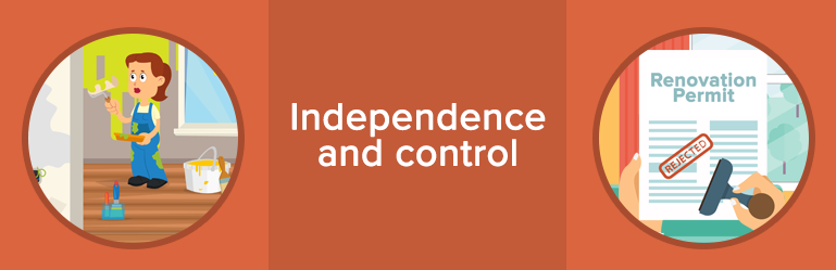 And speaking of restrictions, there's no denying that single-family homeowners have more control over their properties. They can renovate their homes whenever and however they like. They can paint their walls and exterior in any color and add any features they like—something that can’t be done by many condo owners. You may need consent or permission from the association before you can do any changes to your condo.